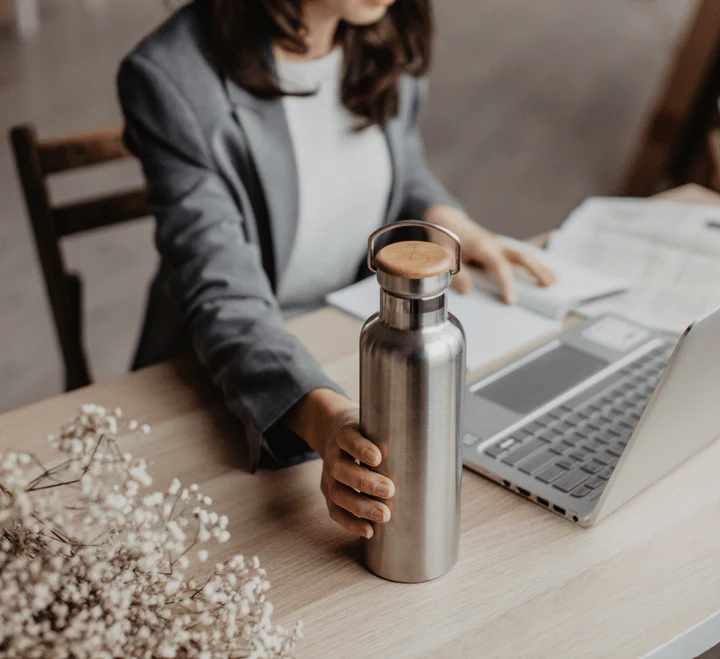 Cantimplora d’aigua sense BPA amb un disseny elegant i neutre en acer inoxidable que manté la teva beguda calenta durant 12 hores o freda durant 24 hores. Àmplia obertura per a facilitar la neteja. Aquesta cantimplora d’aigua reutilitzable serà la teva nova companya en qualsevol lloc que vagis i a casa per a mantenir-te hidratada. El disseny únic està rematat amb una tapa de bambú, és neutre i fa que la cantimplora d’aigua reutilitzable sigui ideal per al treball, el senderisme, el ioga, els viatges i totes les activitats quotidianes. Pots trobar-les en diferents mides: