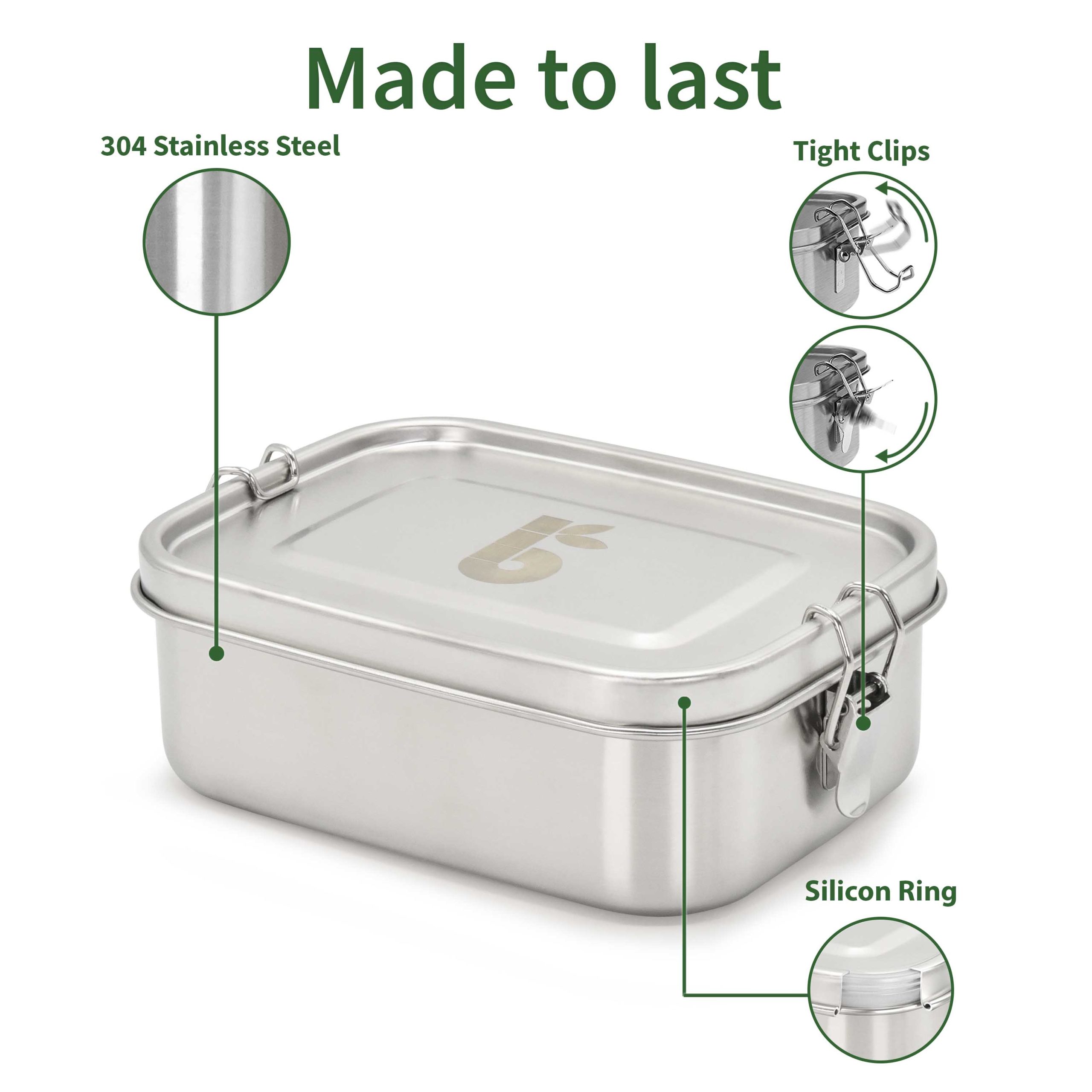 Aquest tupper està completament fabricat amb acer inoxidable 304. El inox 304 és genial perquè resisteix a la corrosió molt millor que qualsevol altre tipus d’acer inoxidable com el 204 o el 201. A més, al contrari que el plàstic, no allibera micropartícules en el teu menjar.