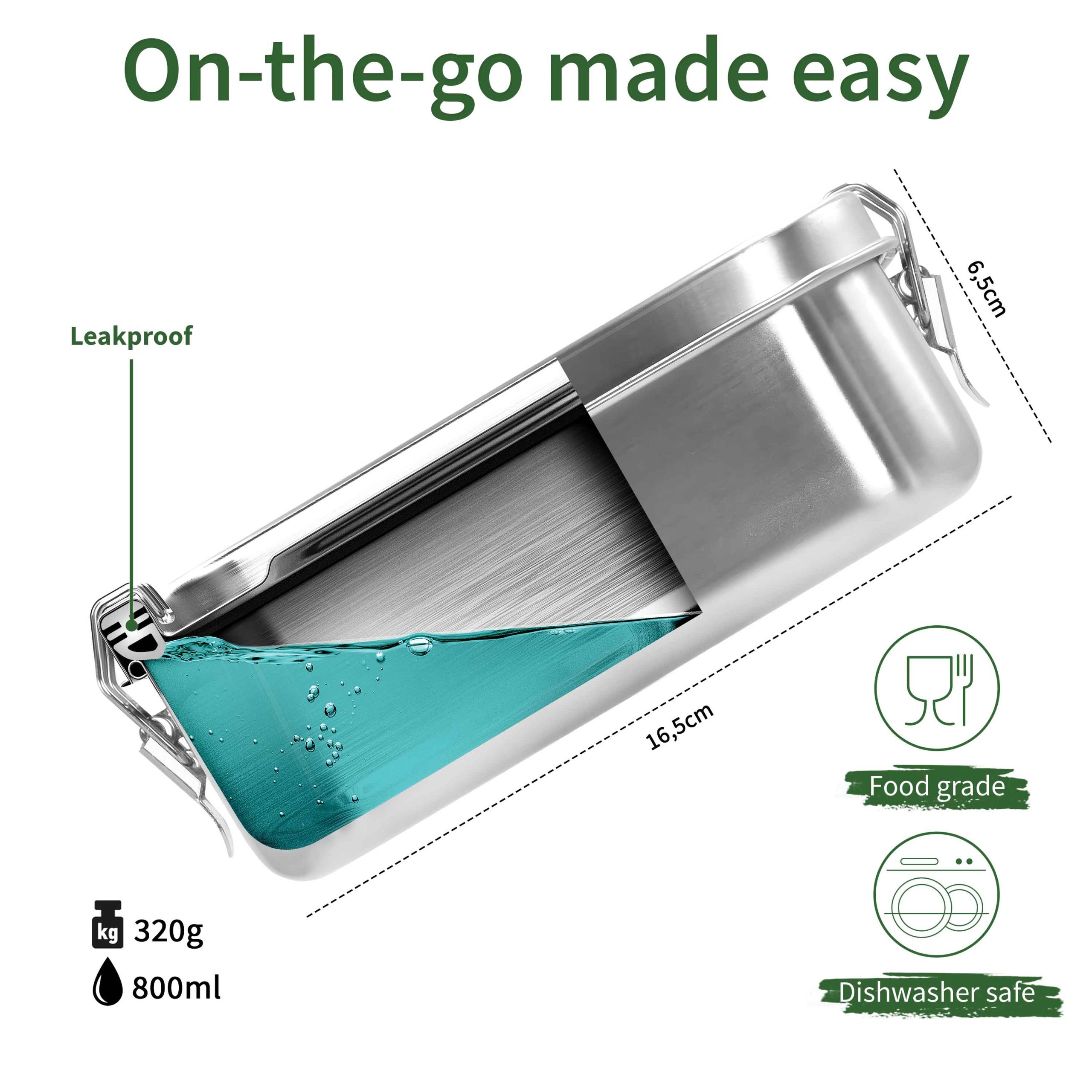 - De 800ml de capacitat i mides de: 16,5 x 13 x 6,5 cm.