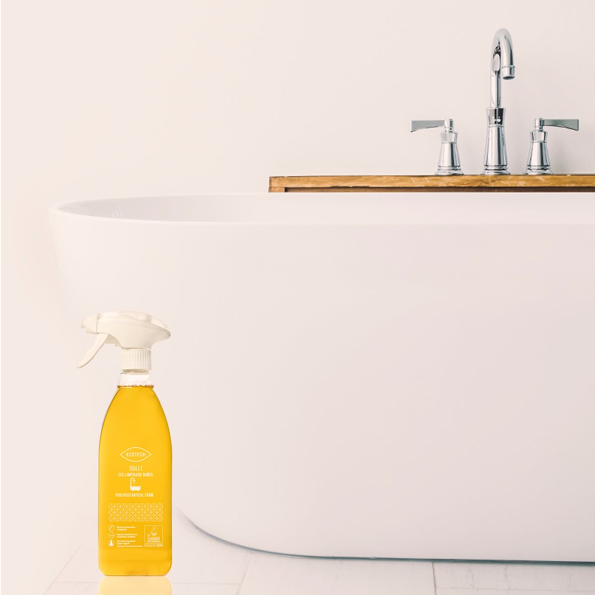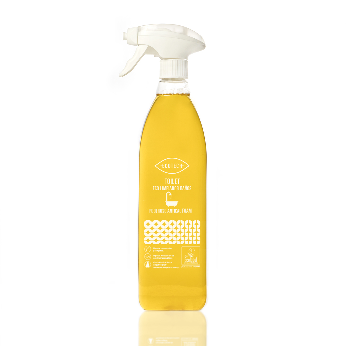 Pots mantenir el teu bany net i lliure de taques de calç i restes de sabó, amb el nostre netejador ecològic d’acció desincrustant en escuma. Els seus ingredients biodegradables procedents de l’agricultura ecològica, com l’àcid acètic de vinagre d’all, eliminen les incrustacions calcàries protegint les superfícies a netejar, així com la nostra salut, ja que, malgrat el seu caràcter àcid, Ecotech Toilet no danya la pell ni emet els vapors tòxics que els desincrustants convencionals generen.