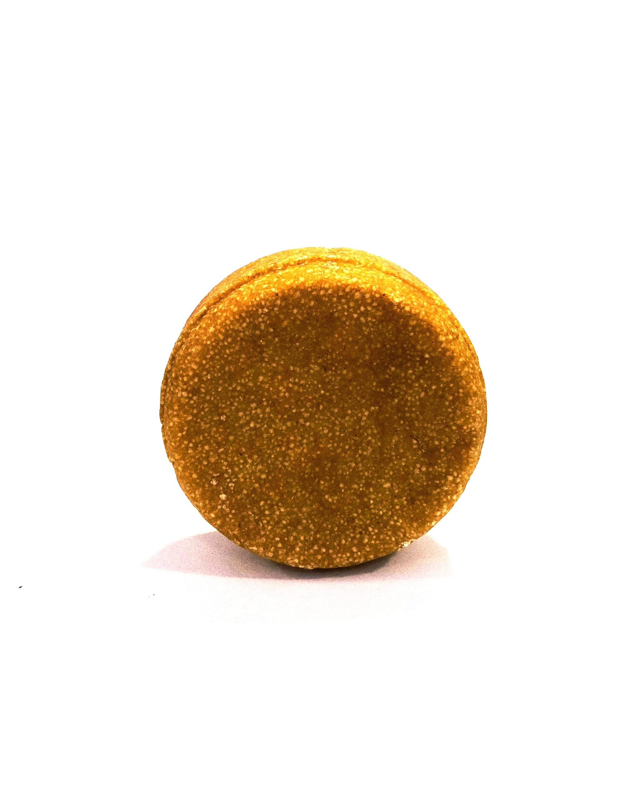 Fregar suaument la pastilla de xampú directament sobre el cabell humit o bé fregar la pastilla a les mans fins a crear escuma i aplicar.